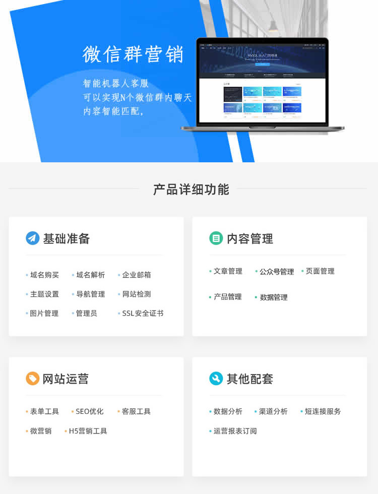 教育培訓(xùn)機構(gòu)行業(yè),在線教學(xué),教育系統(tǒng)基礎(chǔ)功能,家長可綁定微信,及時收到學(xué)校的通知、作業(yè)等信息,校長、老師、家長、學(xué)生單頁,主頁、相冊等。網(wǎng)站展現(xiàn)方式有:PC+手機+微信,用戶免費體驗 ;可視化管理,無需基礎(chǔ),三站合一,內(nèi)容同步PC+手機+微信,一個后臺同時管理PC+手機+微信,輕松運營管理 ;全面應(yīng)用云計算資源,確保足夠安全,足夠速度;標(biāo)準(zhǔn)化制作流程。